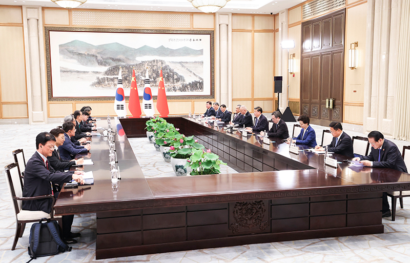 习近平强调,中韩建交以来,友好合作始终是中韩关系的主流。中方坚持对韩睦邻友好政策,重视韩方致力于中韩合作的积极意愿。希望韩方同中方相向而行,把重视和发展中韩关系体现在政策和行动上,相互尊重,维护友好合作大方向。中国正以高质量发展全面推进中国式现代化,14亿多人口整体迈入现代化,必将进一步释放出巨大市场机遇。中韩经济联系密切,产业链供应链深度融合,两国可以深化互利合作,继续相互成就。中韩都主张维护多边主义和全球自由贸易体系,可以加强沟通协调,推动国际秩序朝着更加公正合理的方向发展。