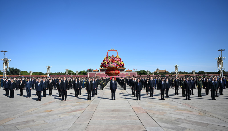 9月30日上午,党和国家领导人习近平、李强、赵乐际、王沪宁、蔡奇、丁薛祥、李希、韩正等来到北京天安门广场,出席烈士纪念日向人民英雄敬献花篮仪式。新华社记者 谢环驰 摄