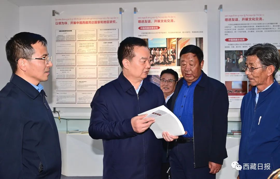 10月7日,西藏自治区党委书记王君正前往自治区社科院、社科联调研。这是王君正考察全区哲学社会科学组织体系建设、学术研究、人才工作情况。记者 旦增西旦 摄
