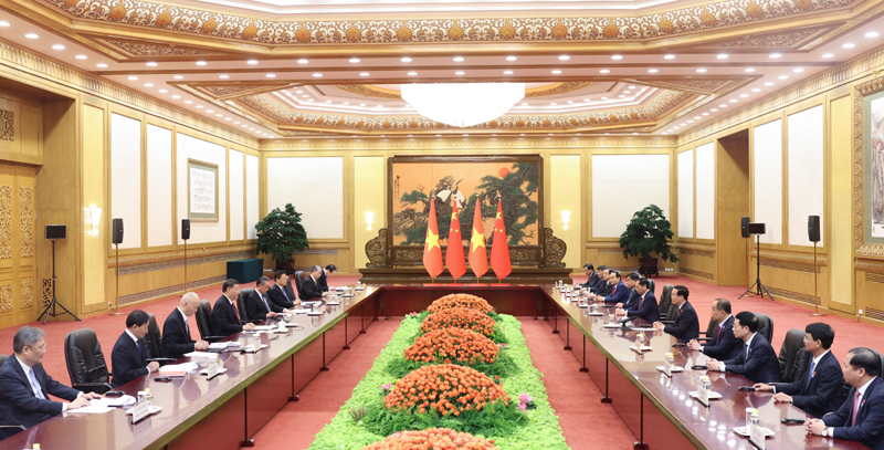 习近平指出,中越两国在争取各自民族解放事业中相互支持,结下了“同志加兄弟”的深厚情谊。中越都在推进各自的社会主义现代化事业,都把中越关系作为各自对外政策的优先方向,都把对方发展视为自身发展机遇。面对风云变幻的国际形势和艰巨繁重的国内发展任务,两国要不忘传统友好初心,牢记共同理想使命,携手走好社会主义道路,构建具有战略意义的命运共同体,确保两国关系始终行驶在互利共赢、携手发展的快车道上。