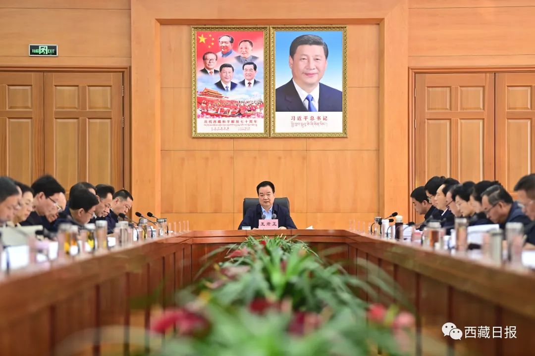 近日,自治区党委书记王君正主持召开自治区党委常委会(扩大)会议,听取自治区人大常委会、自治区政府、自治区政协、自治区高级人民法院、自治区人民检察院党组工作汇报,研究审议有关文件。记者 旦增西旦 摄